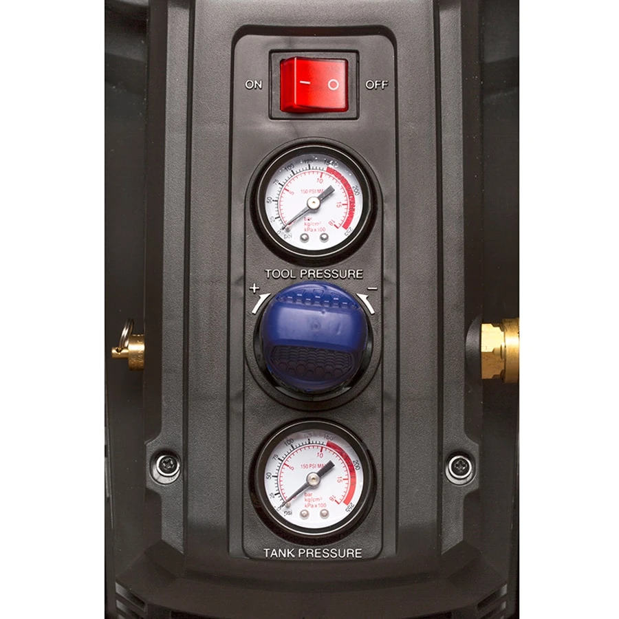 - Control panel with 2-in steel case gauges, regulator and brass quick coupler offer easy access and operation