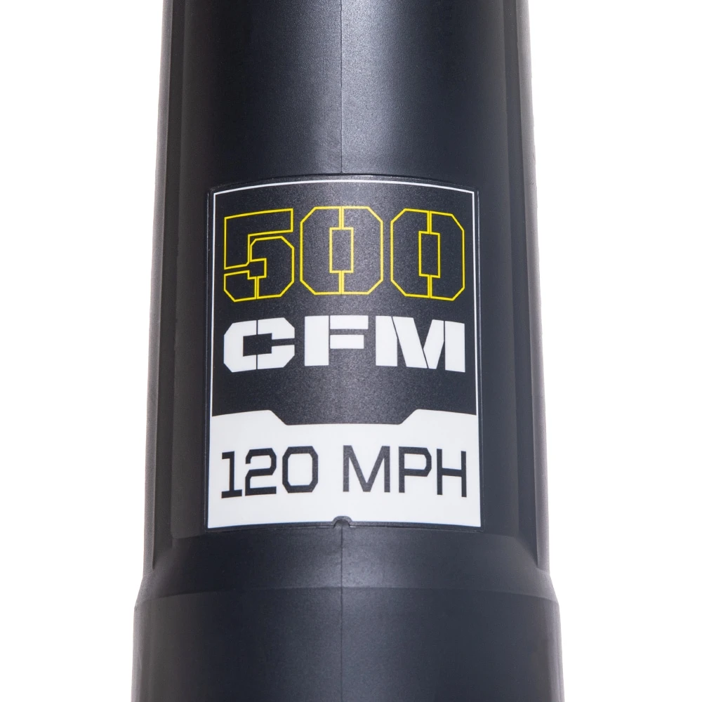 - Turbine fan produces air flow of up to 500-CFM and 120-MPH