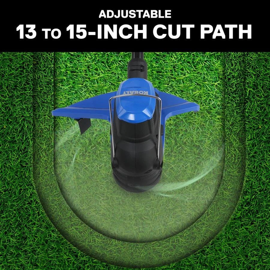 - Adjustable cutting swath from 13-inch to 15-inch to allow for extended runtime or faster trimming