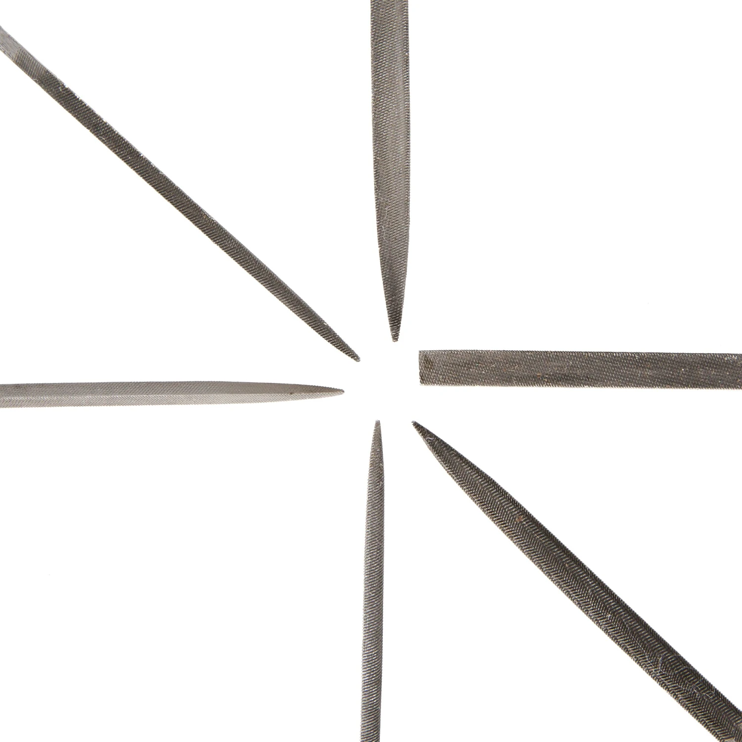 - 6-Piece precision/micro file set includes flat, square, three-square (triangular), round, half-round, and equaling files