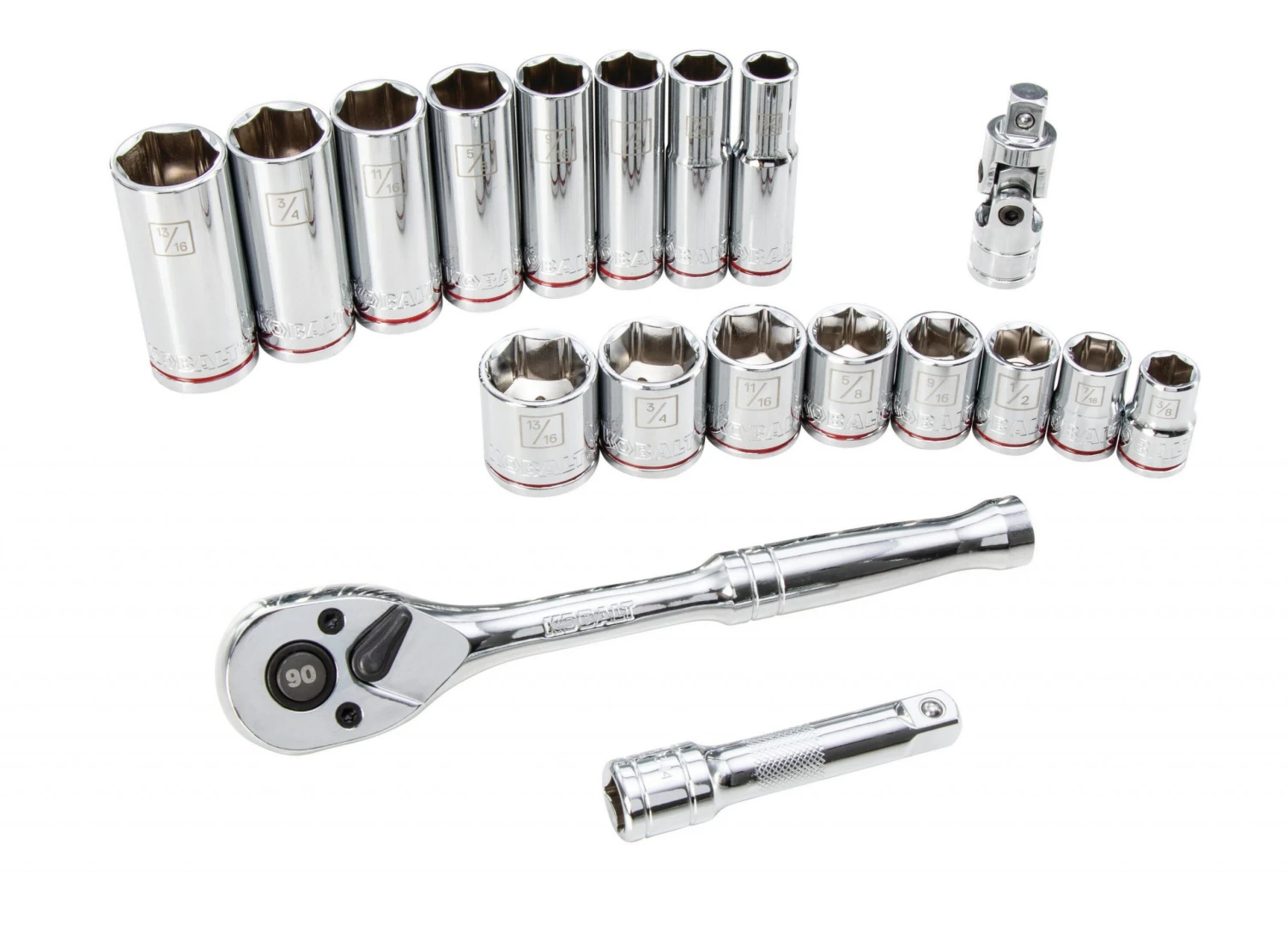 Kobalt Mechanics Tool Sets 19-Piece Standard (SAE) Polished Chrome Mechanics Tool Set (3/8-in)