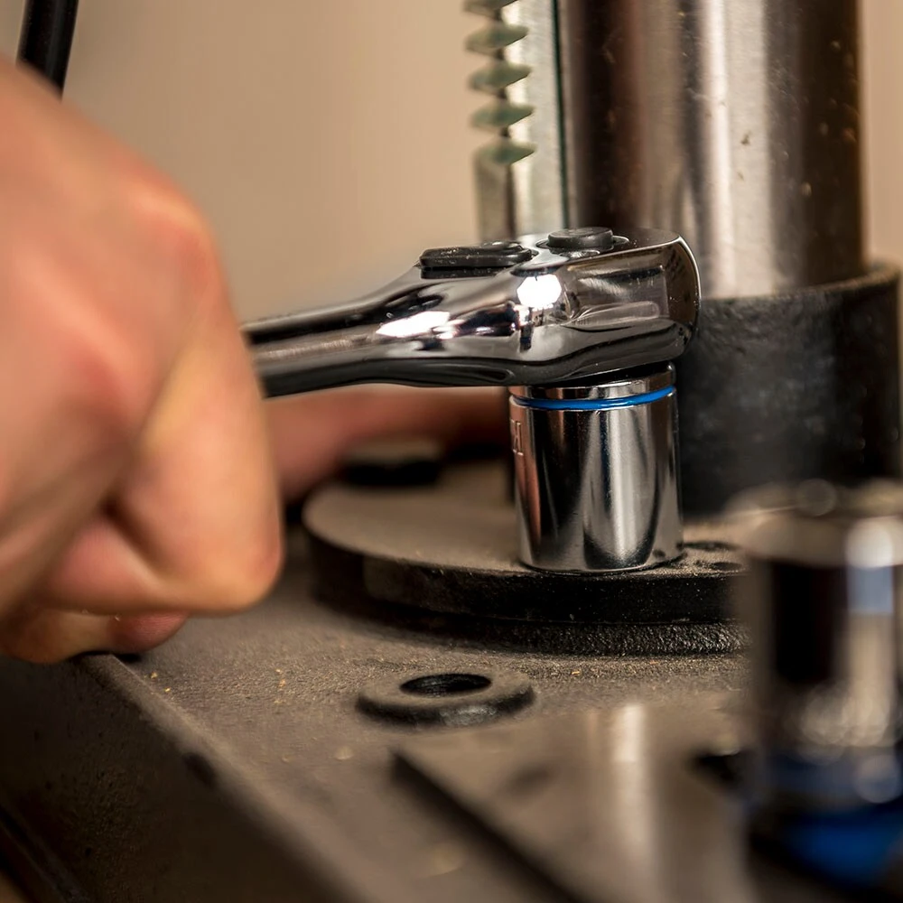 - Quick-release button on ratchets allows for rapid socket and/or accessory change