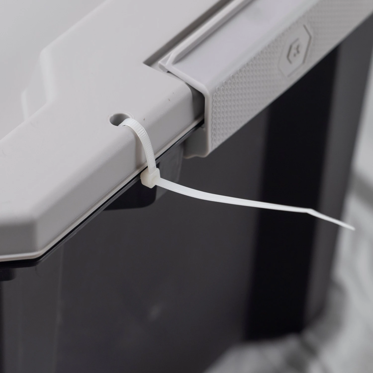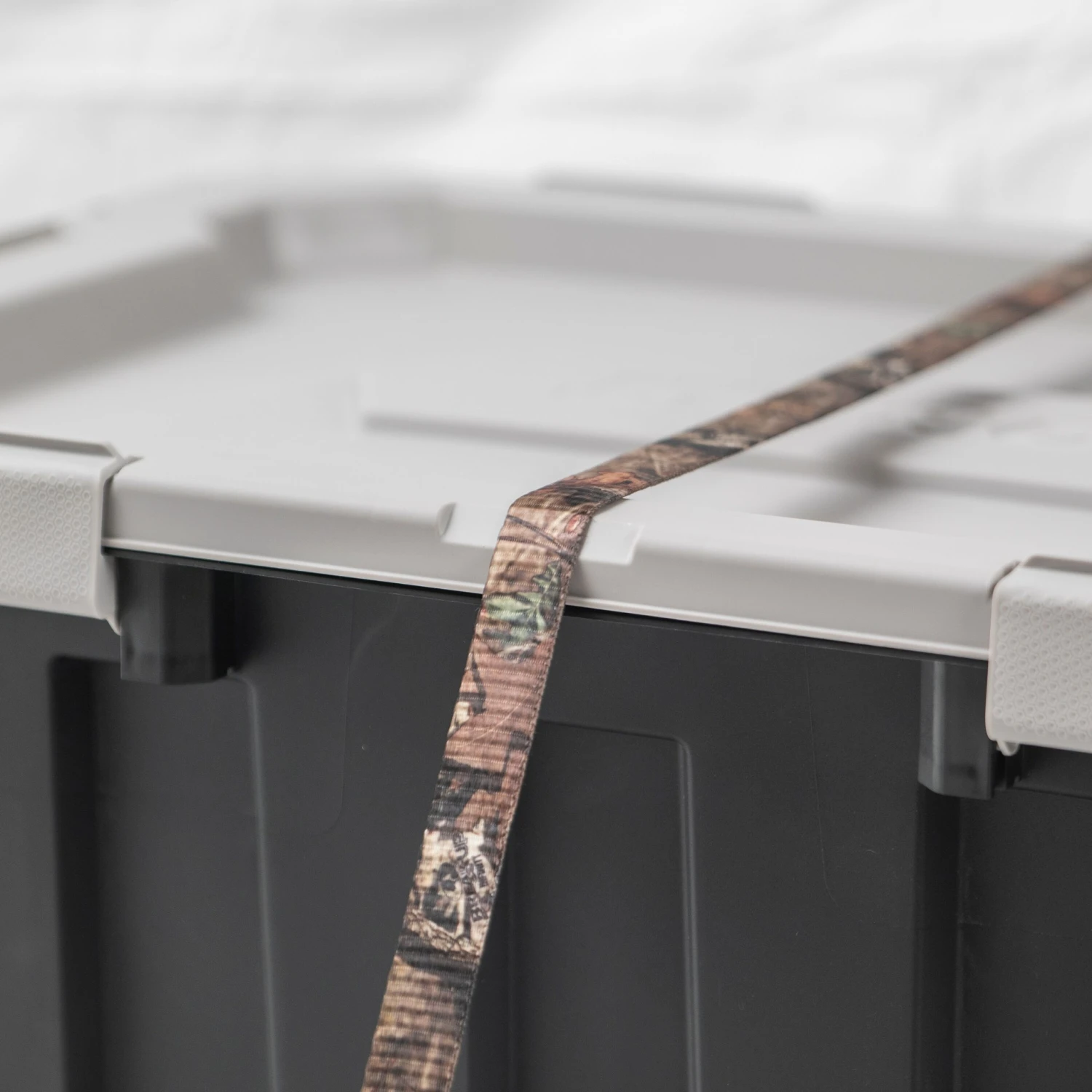 - Strap locator’s on the lid make tying down the storage bin more secure