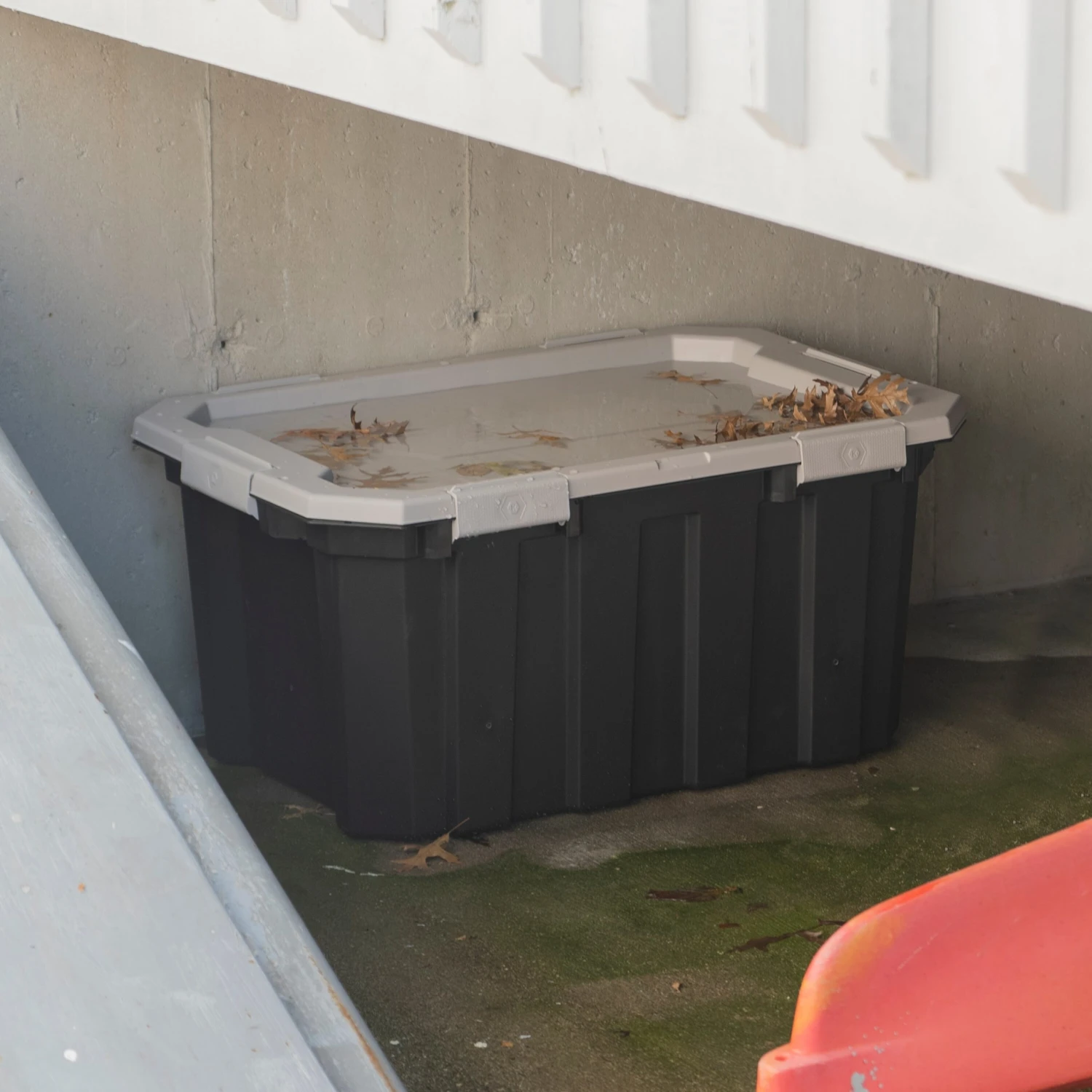 Kobalt 24 Gallon heavy duty weatherproof tote is perfect for storing your valuables to keep them safe from water, moisture, dust and any debris. This tote offers heavy duty latches and a foam seal around the rim of the lid to keep everything out.