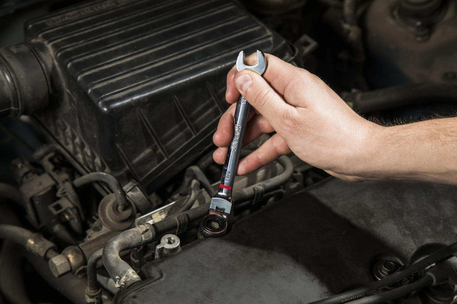 - Box end pivots 180 degrees, providing unlimited leverage and allows access to the narrowest of work areas