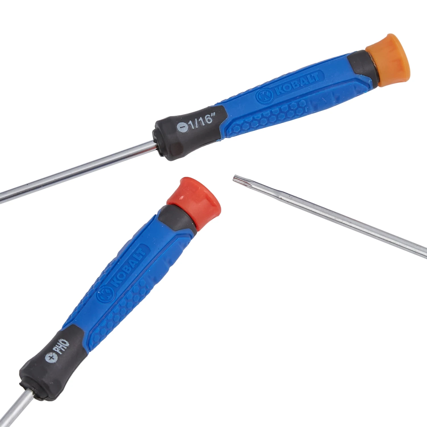 - The kit includes one of each: PH0, PH00, PH000, T7, T8, T9, Slotted 1/16, Slotted 3/32, Slotted 5/64, and Slotted 1/8