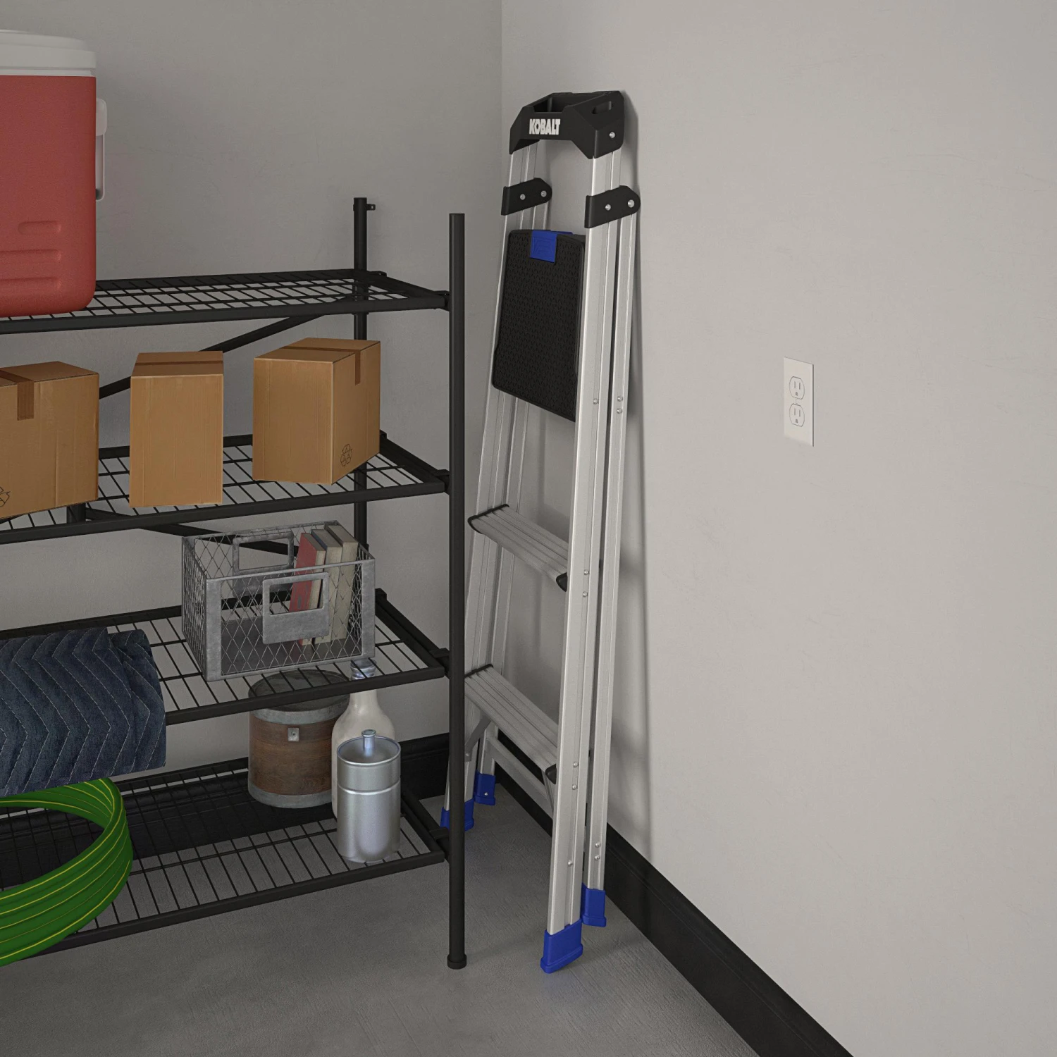 Durability at it’s lightest. This 3-step aluminum ladder with utility tray has a 250 lb weight capacity. Its feather-like, strong, aluminum design allows for easy transportation, set-up and storage. The extra large, locking, platform step offers a stable and secure standing area as you work for peace of mind. The built-in utility tray is perfect for holding tools and hardware when completing any household project.features An ANSI type 1 duty rating and a limited lifetime warranty.