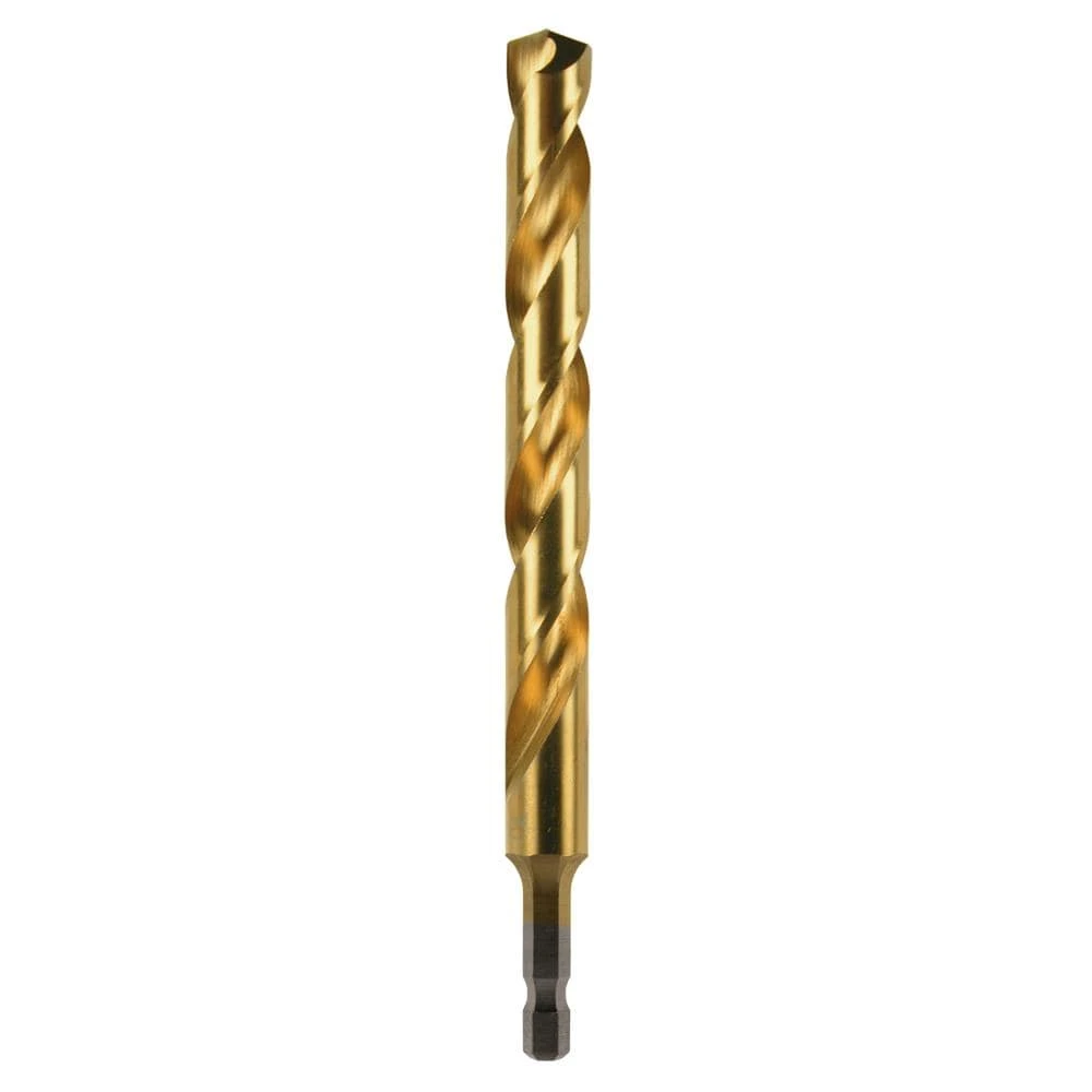 All purpose titanium coated high speed steel drill bit for use on metal, wood and plastic.